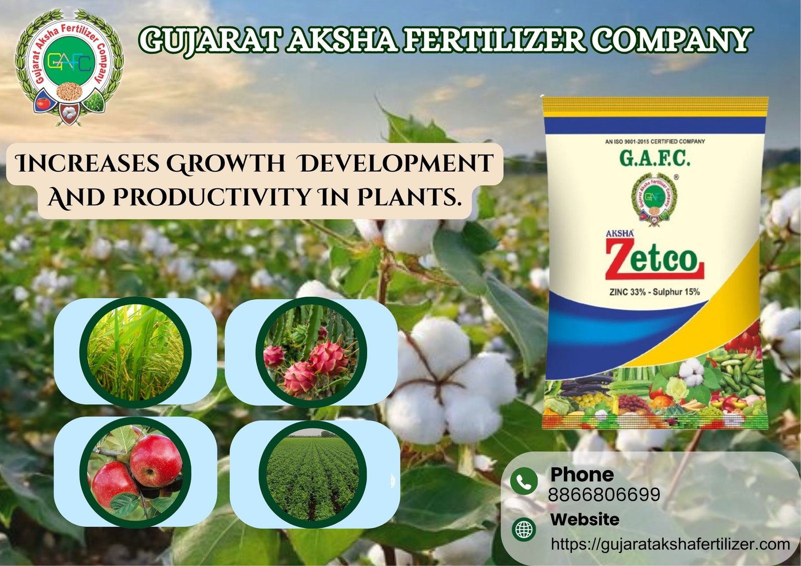 - Prevents Zinc Deficiency: Corrects stunted growth, leaf chlorosis, and reduced crop yield.