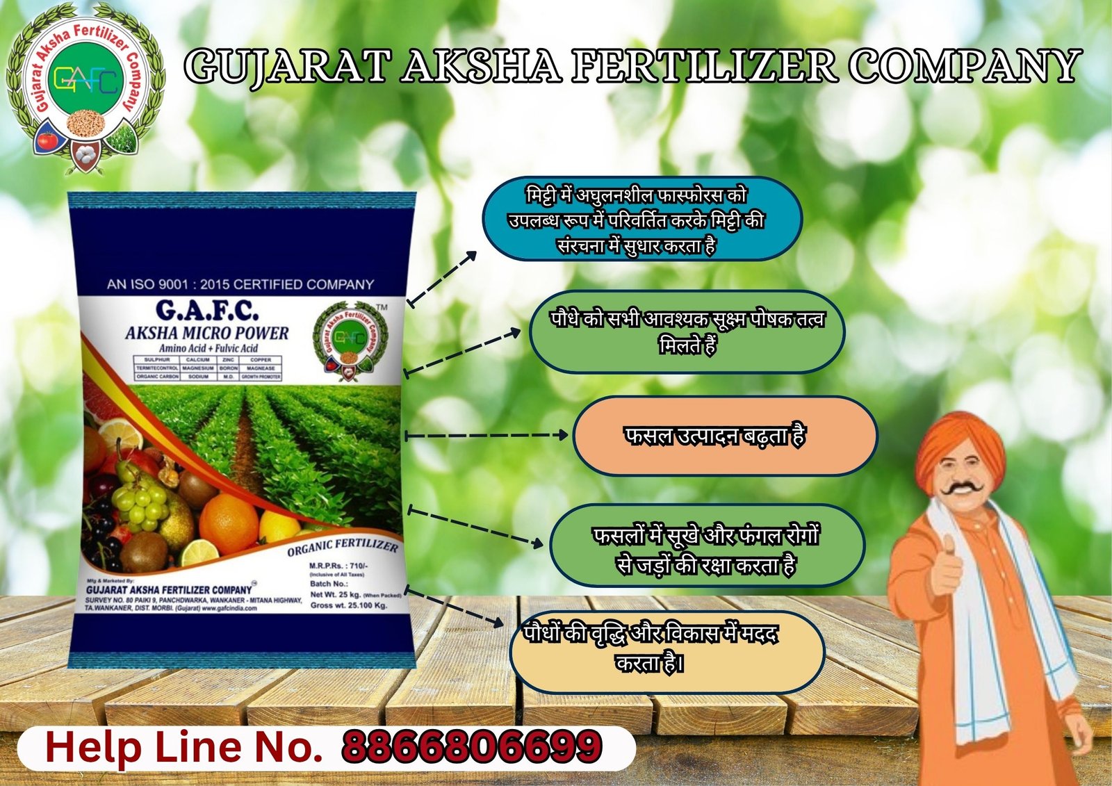 Micro Power Fertilizer boosts soil health, improves plant growth, and enhances crop yield through sustained nutrient release and organic soil enrichment.