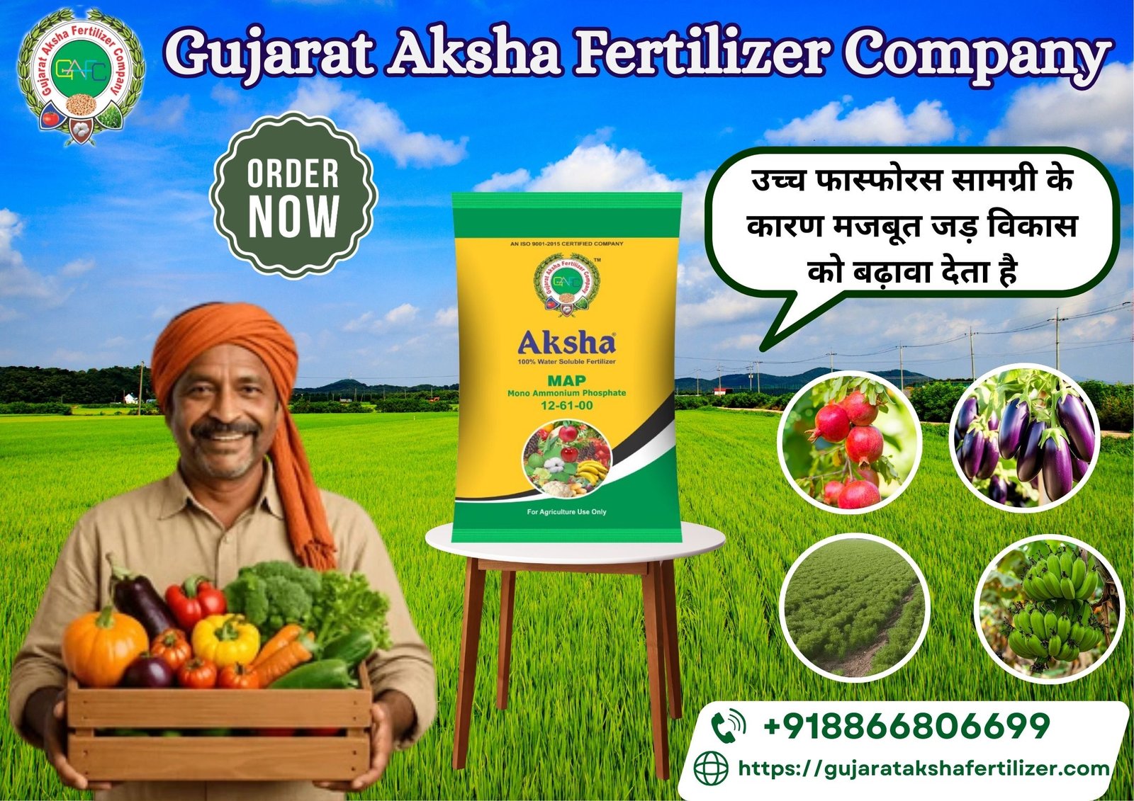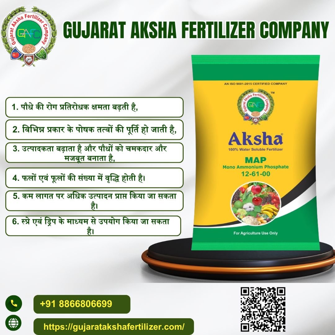 MAP 12-61-00 Fertilizer is ideal for early-stage plant growth, root strengthening, flowering, and fruit development, ensuring higher crop yield and quality.